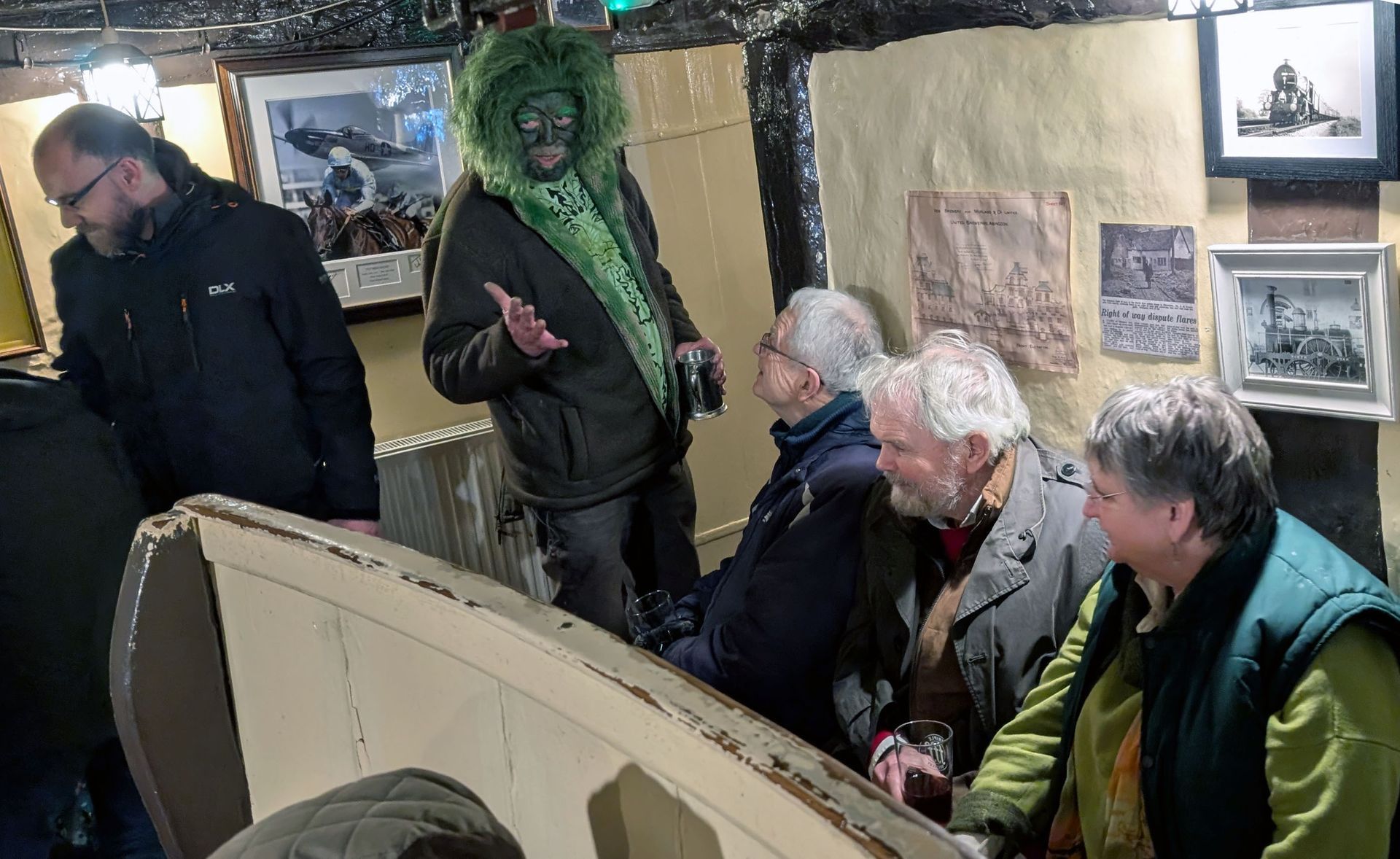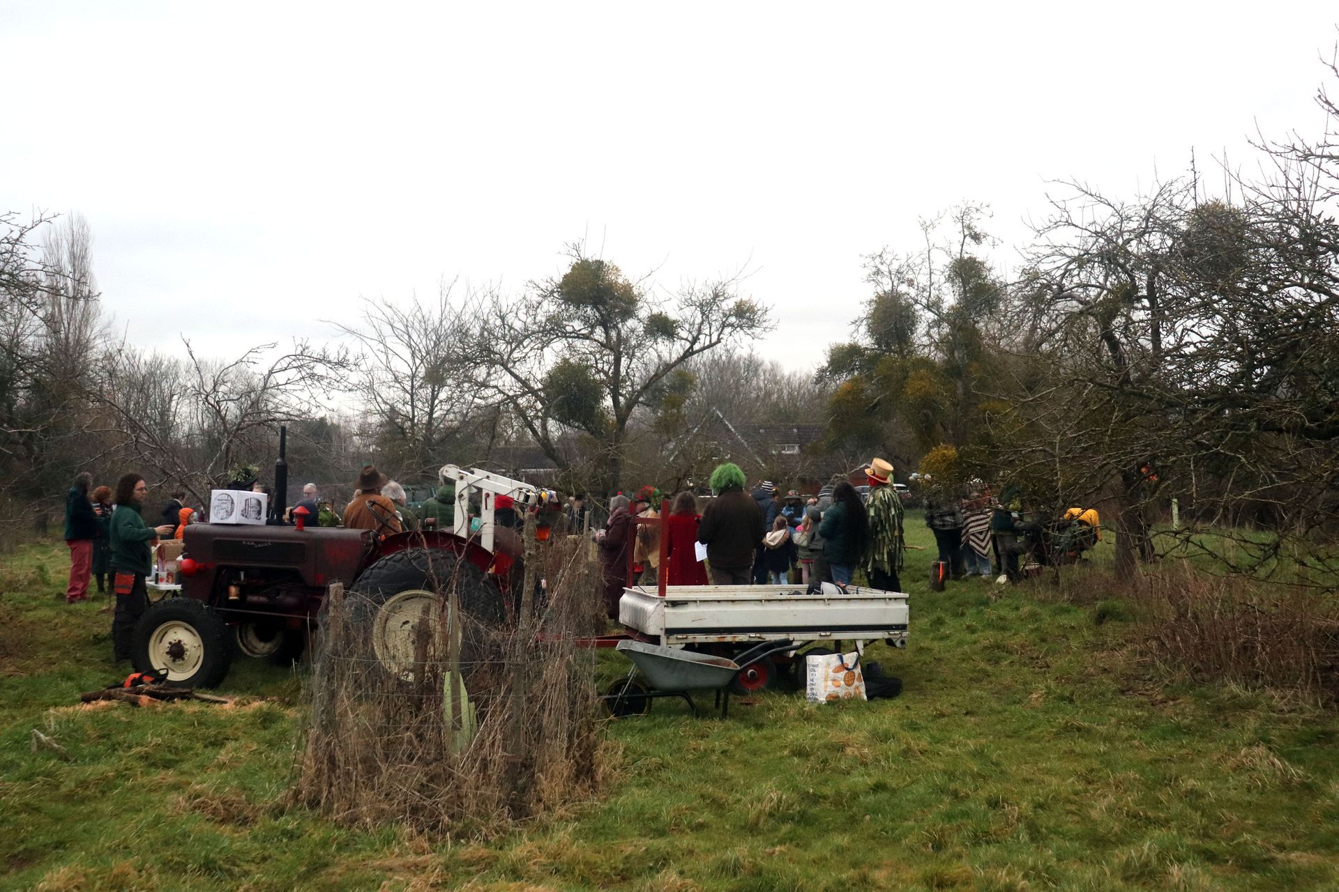 This was a true village ‘country’ evening at dusk on the night exactly half-way between the Winter Solstice and the Spring Equinox. Each decade 1930s to 2020s was represented, (By ages 91 to small child) at the orchard with more villagers turning up as the wassail walked to the pub.